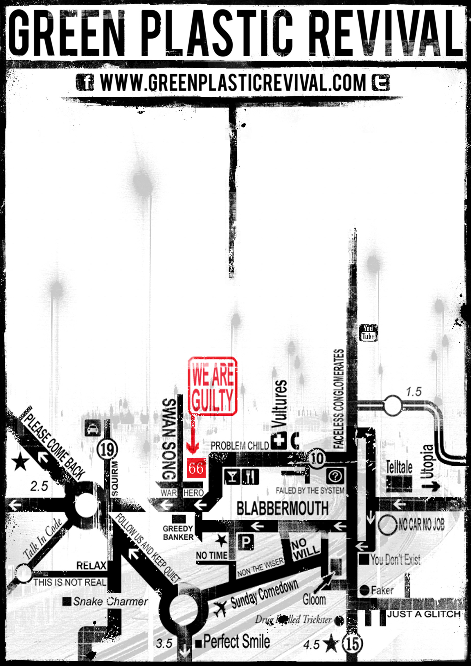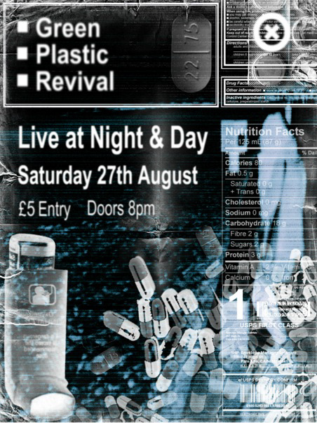 Designs for Manchester Indie band, Green Plastic Revival.. Gig flyers, posters, CD cover art.