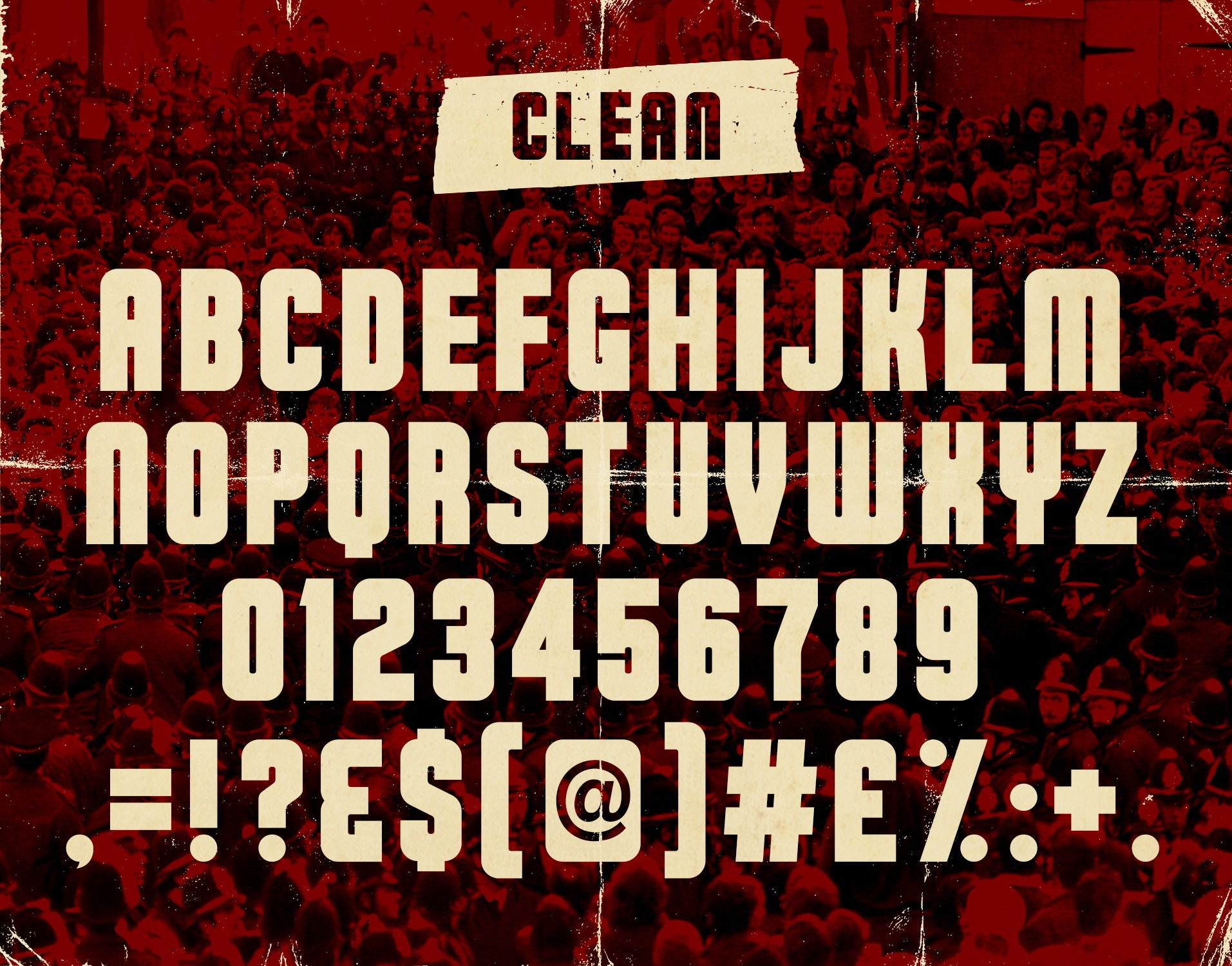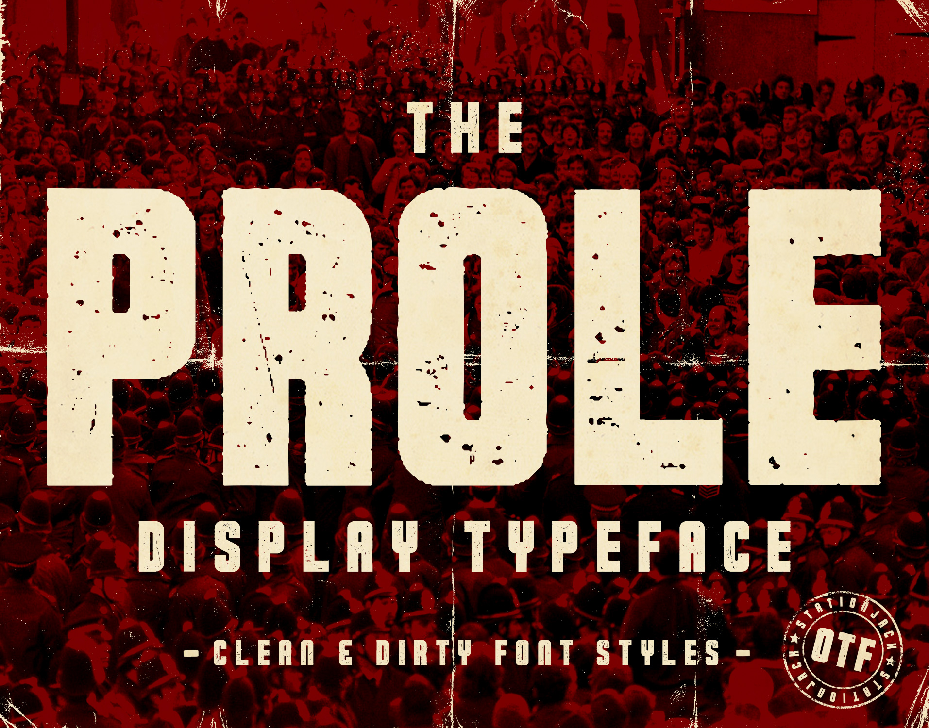 The Prole is a bold sans serif display typeface.This font has two styles including Clean & Dirty. All fonts come with upper case letters, numbers and a selection of punctuation.